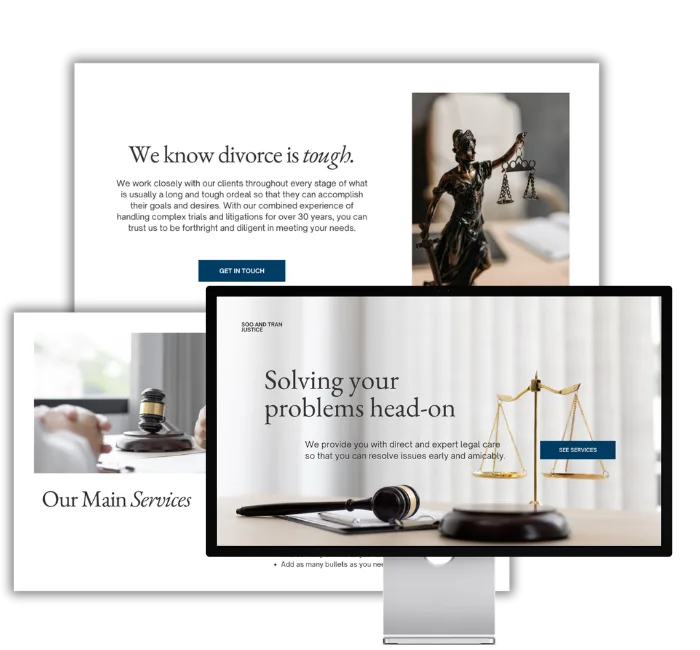 Цена разработки сайта юридической компании с индивидуальным дизайном и продуманной структурой стартует от 16 700 грн. Если требуется расширенный функционал, можно купить сайт для юридической фирмы в корпоративном формате — от 40 000 грн. Возможен полный заказ сайта юридической фирмы с адаптацией под конкретные направления права.